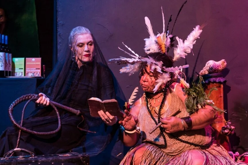 Created by an incredible cast of Javanese, Japanese, Dutch, Indonesian, Papua New Guinean, Sumatran, and Australian artists, the work is a collaboration between DarahRouge (Bandung, West Java) and the Centre for Australasian Theatre (Cairns). The two companies have been collaborating since 2013, and for this project met at Metro Arts in Brisbane for an artist’s residency, the results of which you see before you. This work was created by the artists in an act spontaneous co-creation; this ownership of the work translates to a deep connection to the material and heady joy in its presentation.