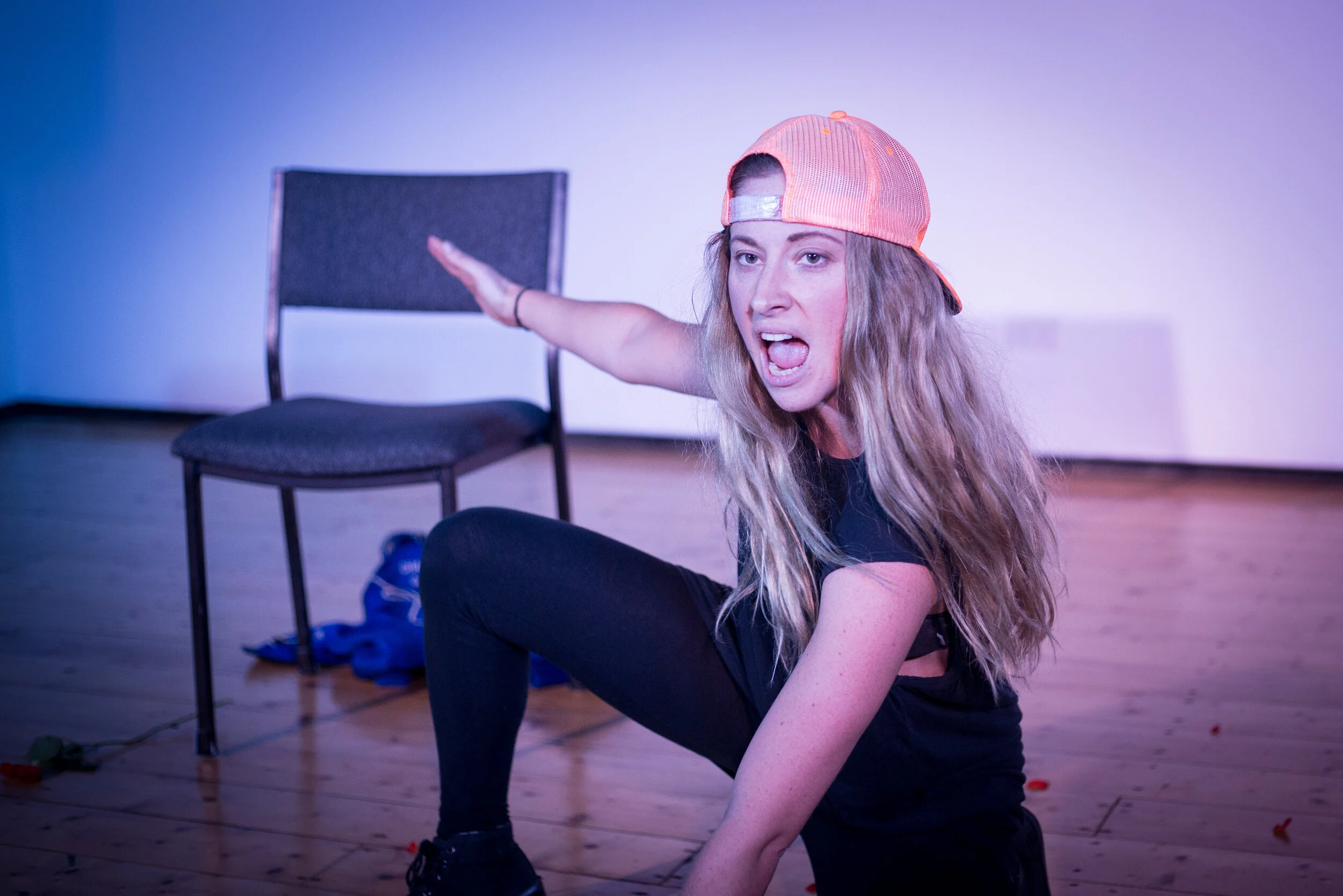Genevieve Butler is a superb character actor. She does a marvellous high-energy skeg boy, and an absolutely perfect stoner. She moves with confidence on the tiny stage, turning the podium, the chair, the central aisle into all the locations. She uses her hair as a superb transformative prop! She is very good indeed, and this work is one that builds on a body of work that has been years in the making.