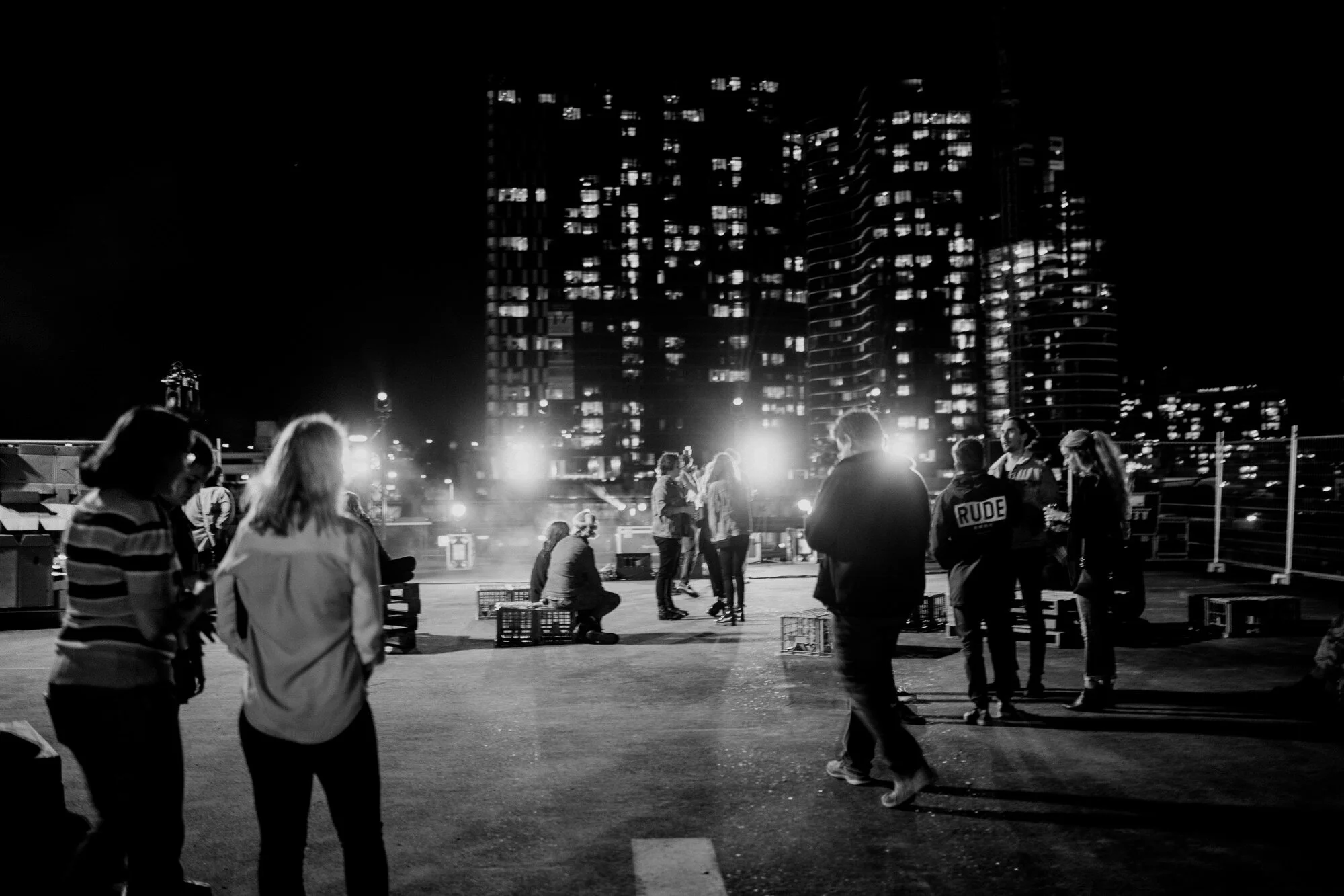 I am sent to Duncan Street. At precisely 8.43, a guy in a high-vis vest comes and tells us to be ready. Suddenly, a crew of young people, friendly as a first-time uber-driver, descend on our little gang, and start scurrying us up stairs to the lower level of the Chinatown carpark.