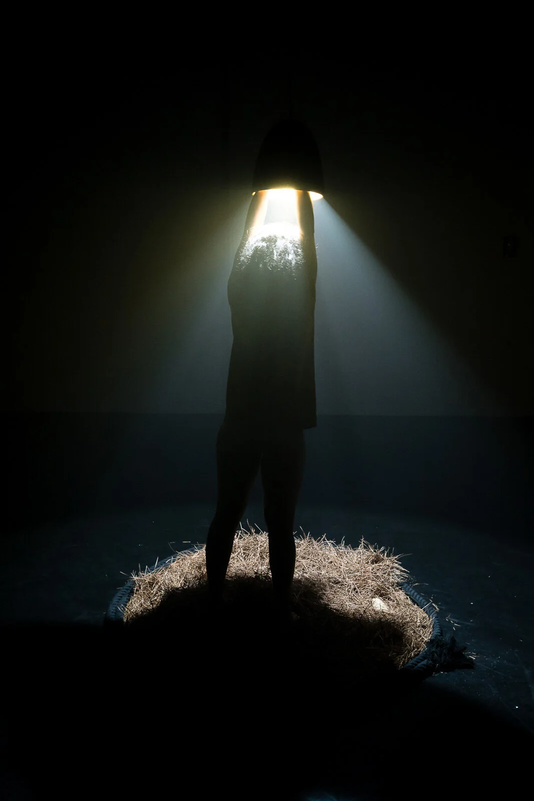 This was a soft, beautiful exploration of the relationship between the two sister-dancers Lowana and Merinda Davies of UMWELT Collective. The room, softened by a veritable forest of pine needles; crunchy, soft, dry and faintly scented. A circle in the centre of the room, a small space. A safe place.
