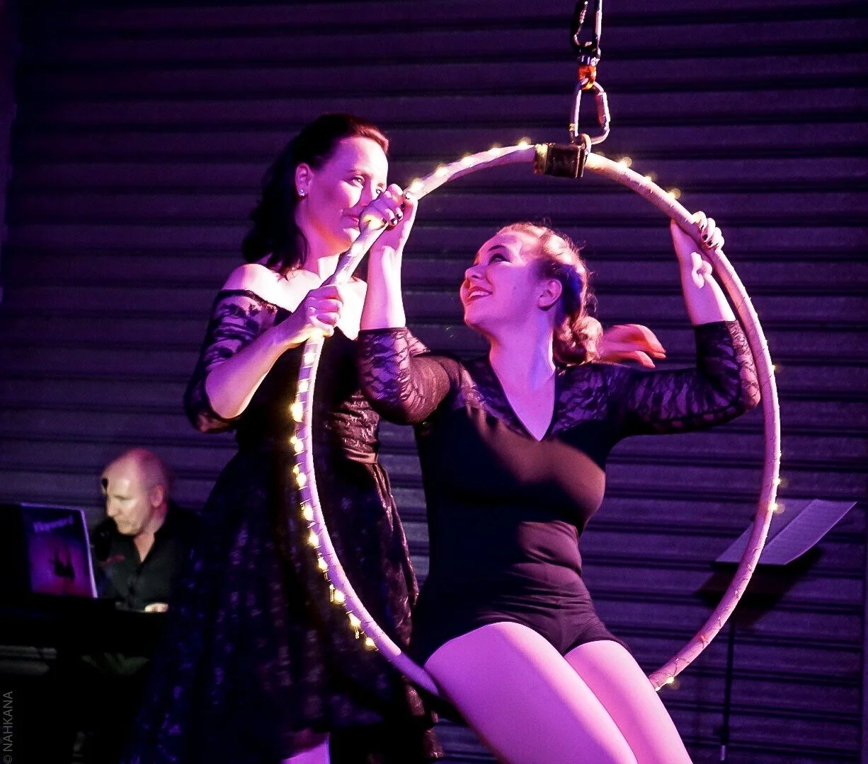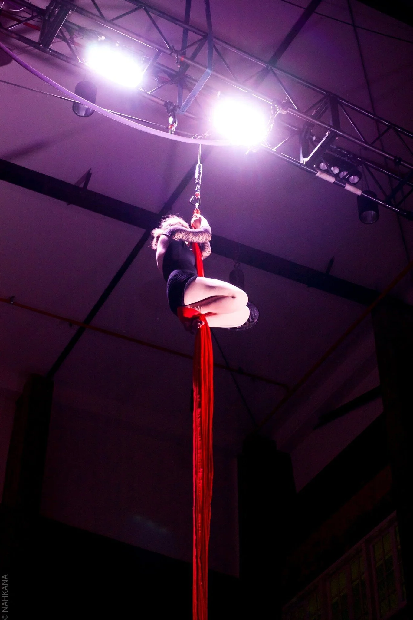 The final denouement in which Bale takes flight on the lyra,her apparatus of choice, is joyous to watch. This is the first full-length soloaerial performance that she has presented, and she is still learning to bepresent enough to truly sink into the moment, but when she winds herself aroundthe ring in this last active routine her ever-increasing strength and skills shinesout.