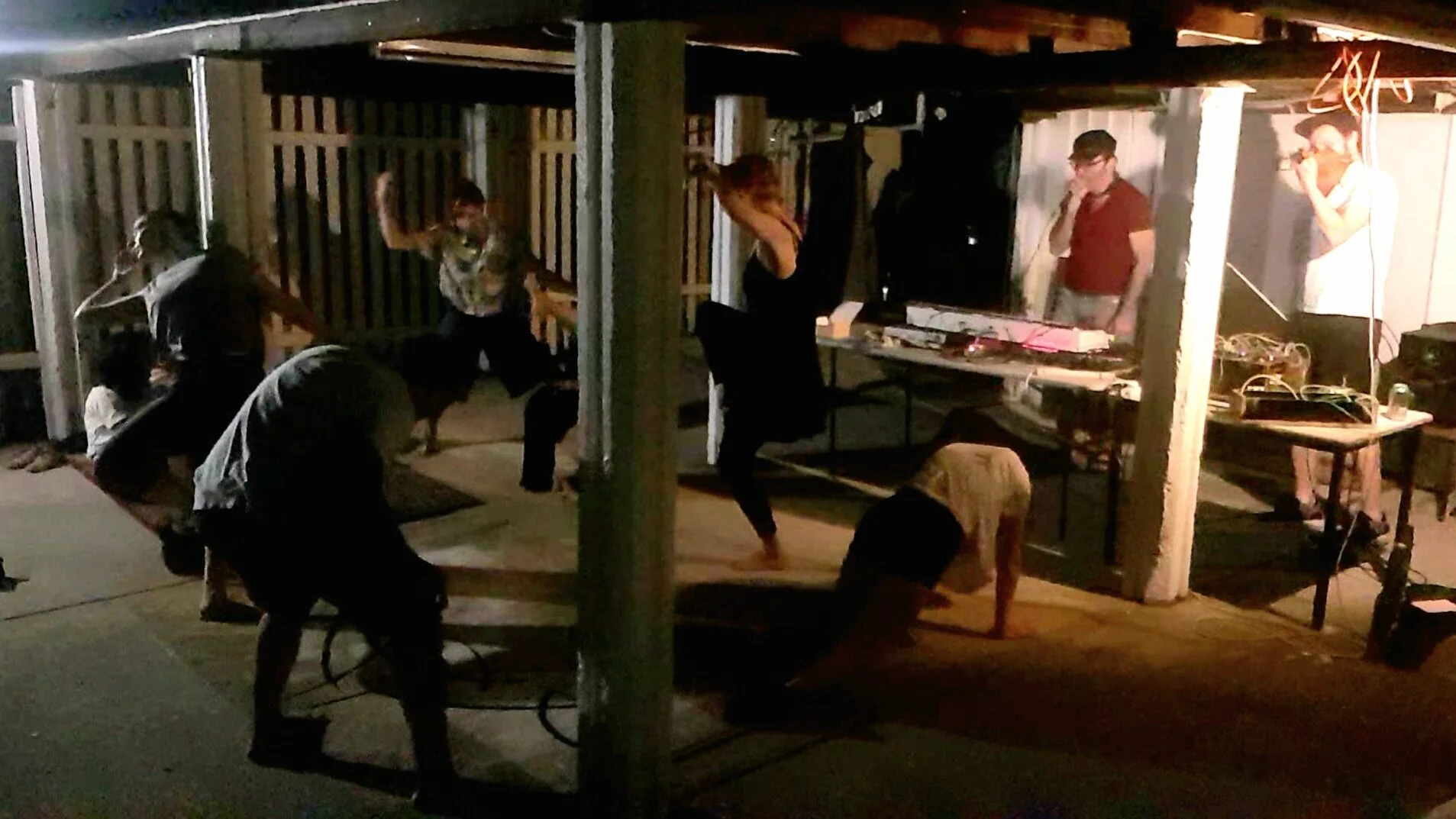 You’ve met the right person who told you the right place to ask. You received the personal invitation to your email inbox and read it twice, grinning and a little nervous. When you arrive, you’re greeted by a smiling lady with short hair and a soft voice, who leads you into the basement below a West End share house-looking place with a sign by the door: “House Conspiracy”. As you walk in, you see a musician grooving before a table full of dials and wires, atop it a violin and a microphone; looking beyond, you see a small group of people moving in strange and beautiful ways with intense concentration. You’ve found it. Welcome to Pollinator.