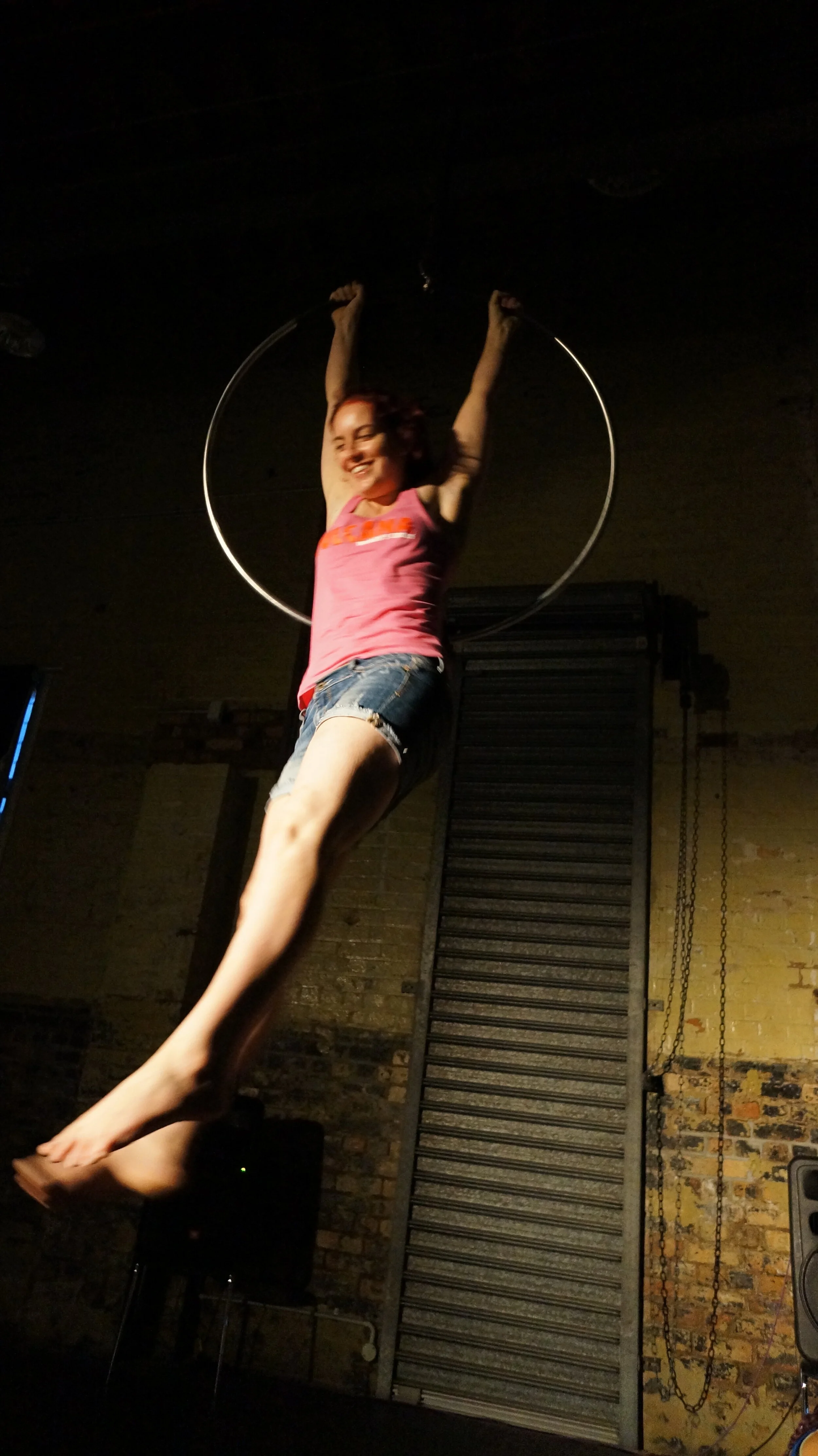 Eliza Dolly (Vulcana Circus) rehearsing for Tipping Point. Image: Phil Turnbull.