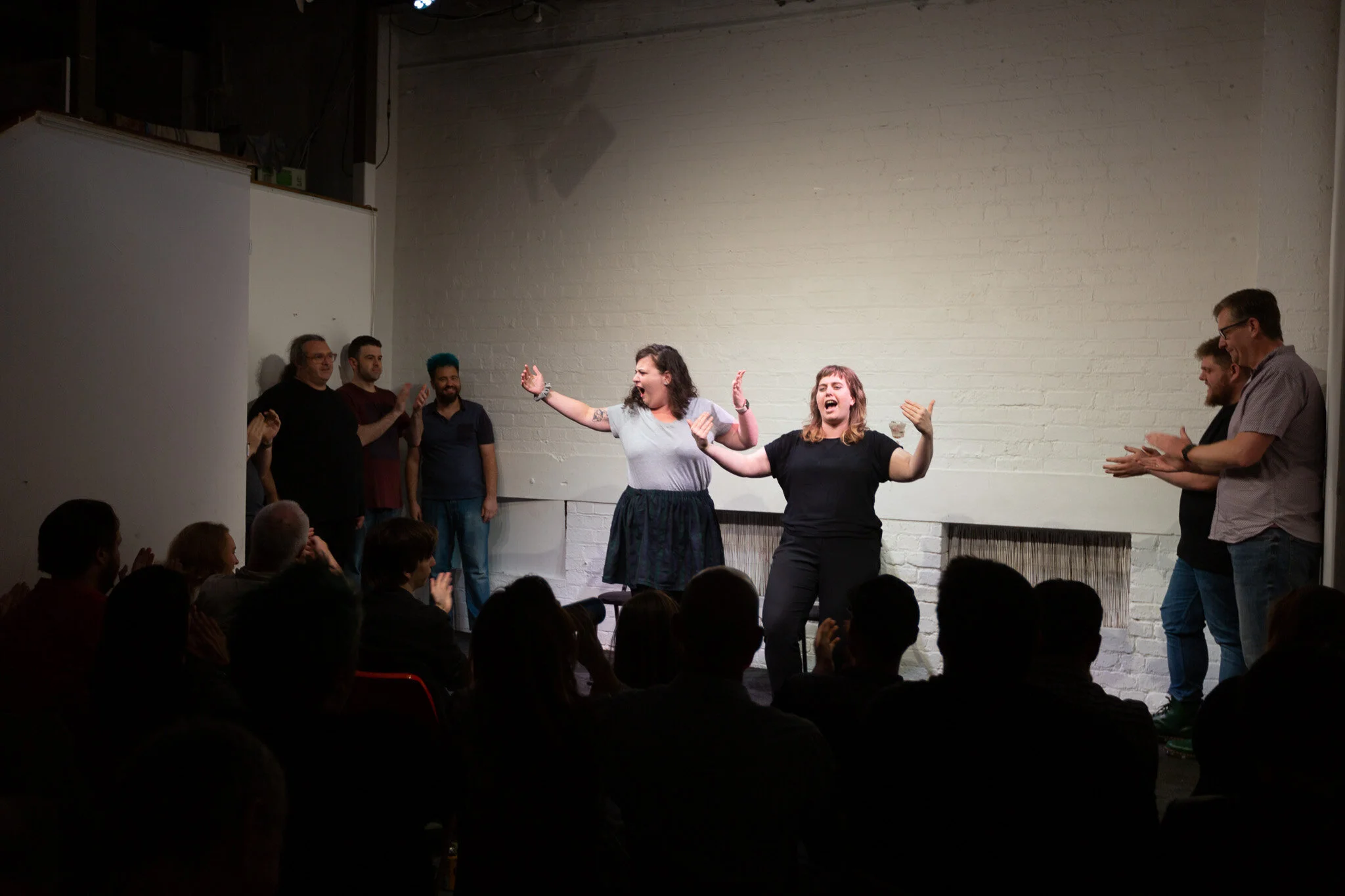 I’ve seen so much that doesn’t makes sense and I still get surprised. It’s the bane of improv shows in that, much like your dreams, trying to explain them afterwards is often futile. We were invited to perform at a 72-hour improv marathon in New York in 2018. At 4am I saw a show called 6 Improvisers Play 3 Men in Trench Coats and they almost brought down the lighting rig improvising on each others shoulders. I saw a show with Ben Schwartz performed entirely in the dark that ended with a dinosaur being hatched live on radio to sing the Frasier theme song. There are some shows I just start laughing at remembering going to them but have no memory of what on earth actually happened in them.