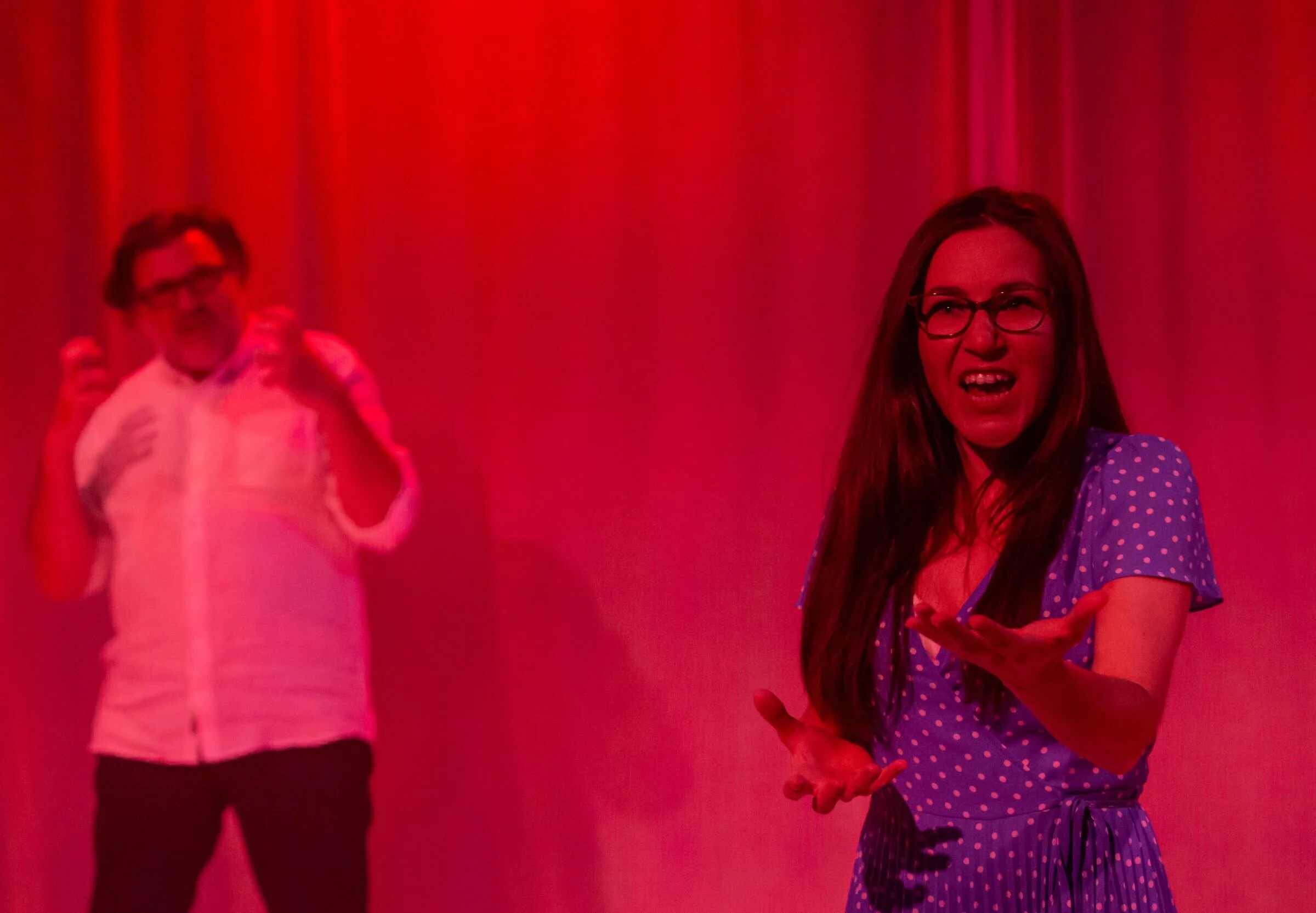 Sarah Ogden (Marian) and Rob Pensalfini (Michael/Mark) both gave superb performances, they are truly clever actors. Although I struggled to feel affection for any of the characters, they were masterfully played, and the live on-stage soundtrack of keyboard, box drum and more by Shenzo Gregorio added a fantastic level of stage tension. The narration was presented almost as if two people were animatedly telling an anecdote at a dinner party, with animated hands and acting out the best parts. They were telling stories about themselves in the third person, an unusual way of storytelling that I’ve not often seen on the stage.