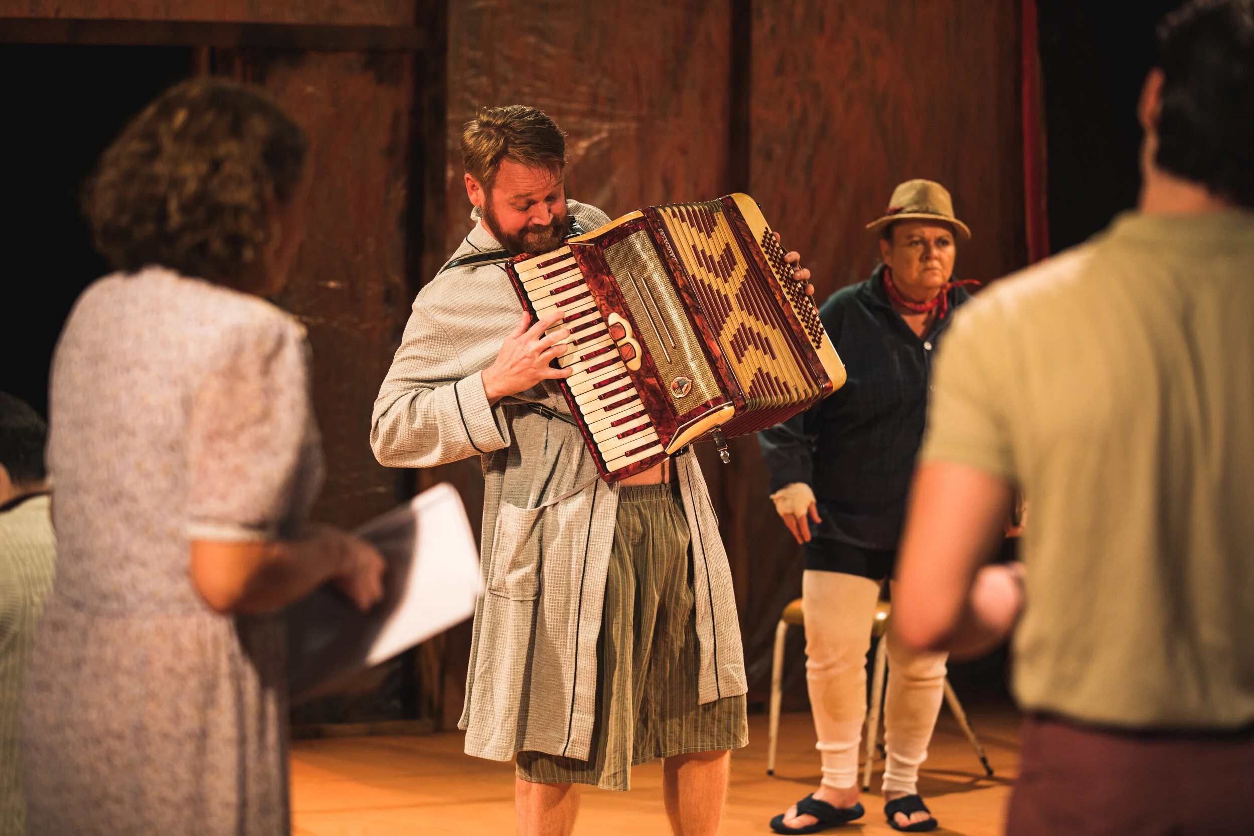 The cast was sublime. There was not one actor that was better than the other. Maybe that sounds cliché but it’s the truth. They were a tight knit ensemble, which was exactly what a play like Cosi needs. Karen Crone’s brought a level of vulnerability to Roy, despite his witty quips and over-the-top persona and Elodie Boal’s Cherry was played with such naivety, warmth and colour that you couldn’t help but fall in love with the character’s protagonist and root for her happy ending. Whilst he didn’t have as many lines or stage time as the other cast members, every line, movement or facial expression Stephen Hirst did as Zac made me laugh so hard that I genuinely thought my lungs were going to explode. From the indecent clothing, to the commentaries on Mozart’s lack of depth of emotion to playing the accordion; it was brilliant.