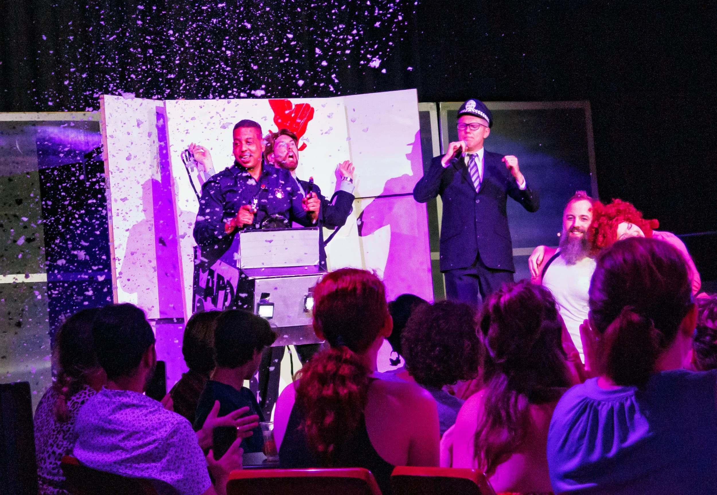 Act React’s trademark props, made all the more special in this performance by the ‘green screen’ prop-handler (Ellen Hardisty). Best moments for me had to be Hardisty’s ‘death’ blood spurts, the helicopter manoeuvrings (also Hardistry), and Simon Chugg’s LAPD cop car outfit and heroics (the low-budget props enhancing another great performance by Chugg);