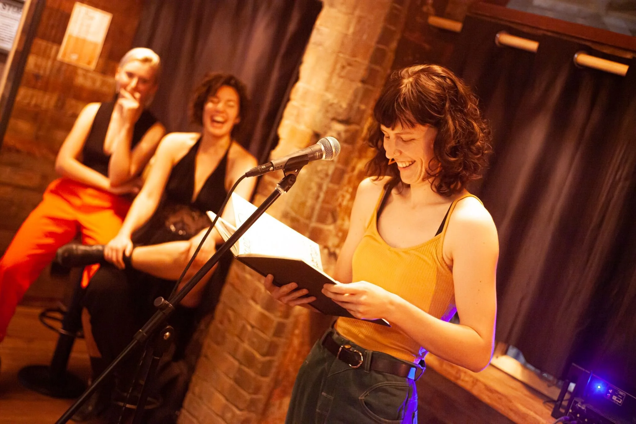 Any regular performance night can live or die on the hosting and luckily For the Record is in good hands with its Cheer Co-Captains. Hosts Maja and Siobhan are fresh and natural fronting the night and bring what they like to call ‘chaotic MCing’ to keep us entertained between acts. Their effortless banter and truly random segues alone would have me coming back month after month, even if Siobhan’s penis hands impression will haunt me until my dying days. Add to that the beautifully surreal opening dream sequence set to, you guessed it, ‘Dream a Little Dream’, create to introduce the theme and you’ve already got yourself a great night.