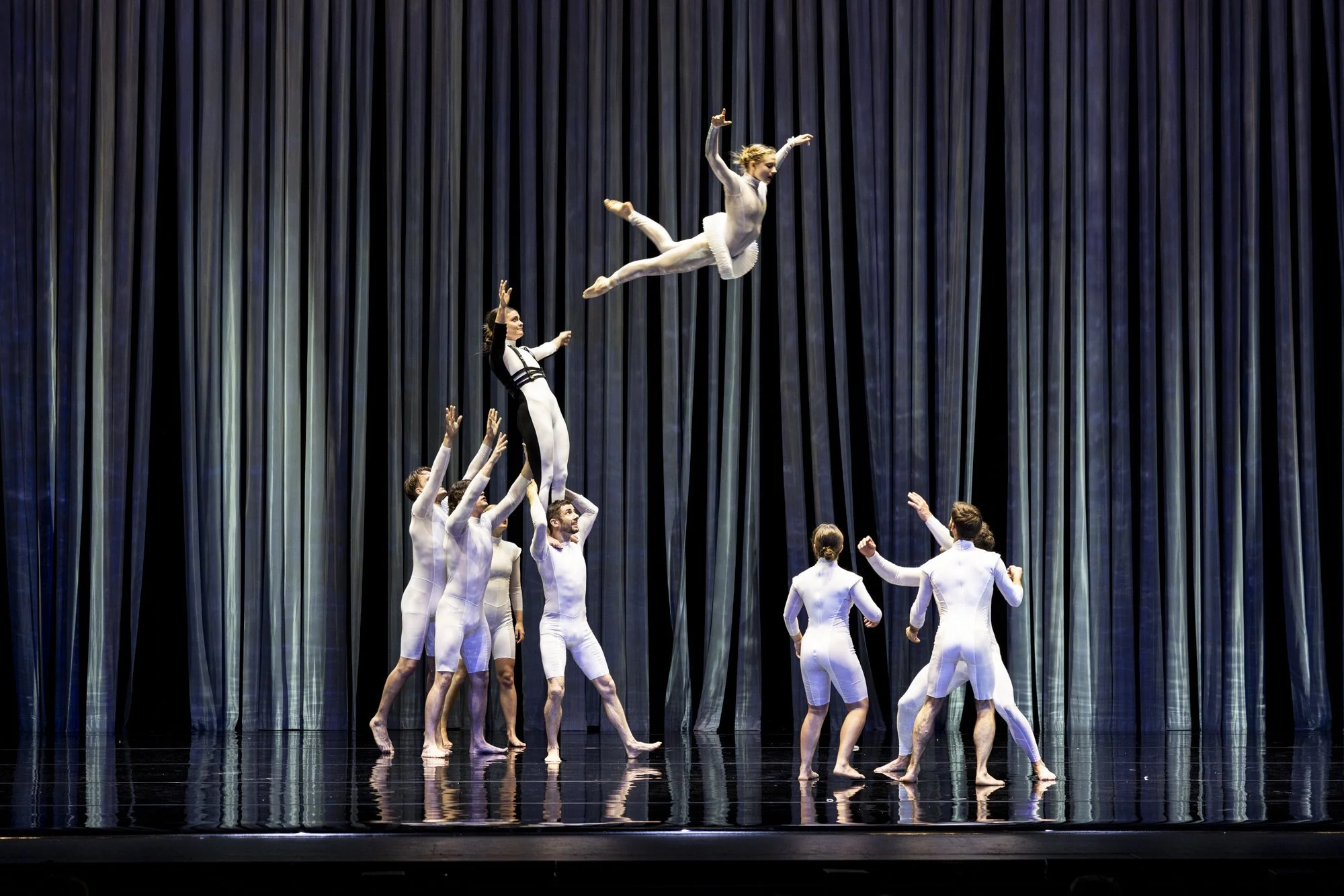 The lighting production, designed by Alexander Berlage, had some incredibly powerful moments but it did get a bit murky mid-production when darker lighting and costumes were teamed together. The most striking moments were notably during Jon Bonaventura's solo on Corde Lisse (aerial rope); the play of light cast multiple shadows onto the staging curtains, which hung in soft ribbons around all 3-sides of the stage. This gave his performance such incredible impact, you could clearly watch his shadow selves performing incredible aerial feats alongside him. It was breathtaking.