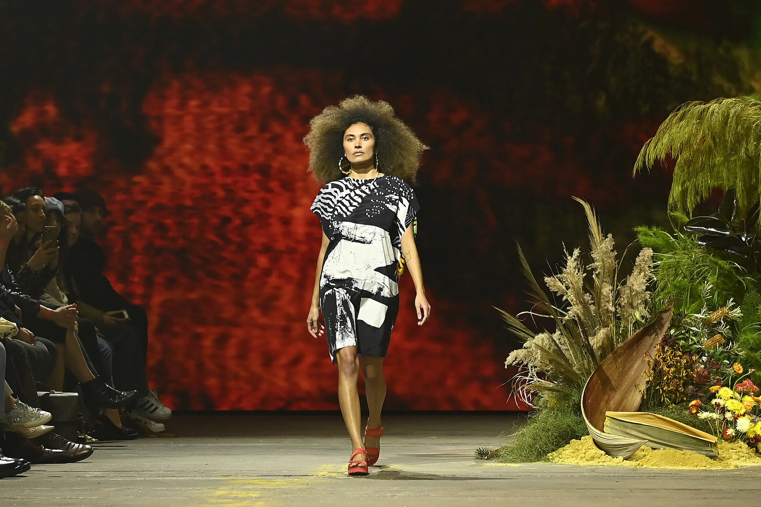 Performed on Meanjin, Grace Lillian Lee and everyone involved have created an original show to highlight garments and textiles created by First Nations designers. Labels and designers such as Elverina Johnson, Magpie Goose, Jarawee, Fiona Wirrer-George, Paul McCann captivated the audience with a selection of high-quality clothing rooted in First Nations culture.