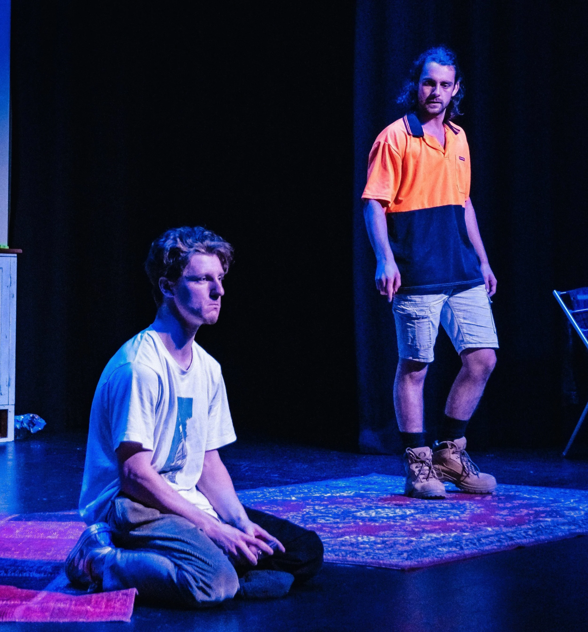 That same feeling was present when I left this student theatre production. Pike’s powerful script isn’t afraid to tackle difficult questions about how society treats young men and how that effects how young men view society. Narrated by Millsy (Ethan Waters), the play explores the story of four friends (three nineteen, one twenty-one) living in a share house who try to cope with the transition into adulthood and all of the struggles of finding a place in society in which they’ve never had one before.