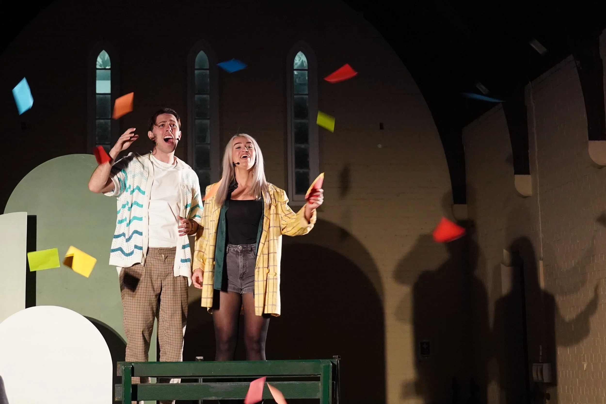 Presented at the historical and heritage listed Holy Trinity Church Hall, New World Stage transformed the space into a buzzing New York City with minimal stage setting - two white chairs, a park bench, and a city cardboard backdrop. It created an intimate theatrical experience, plus enhanced the underlying theme of connection.