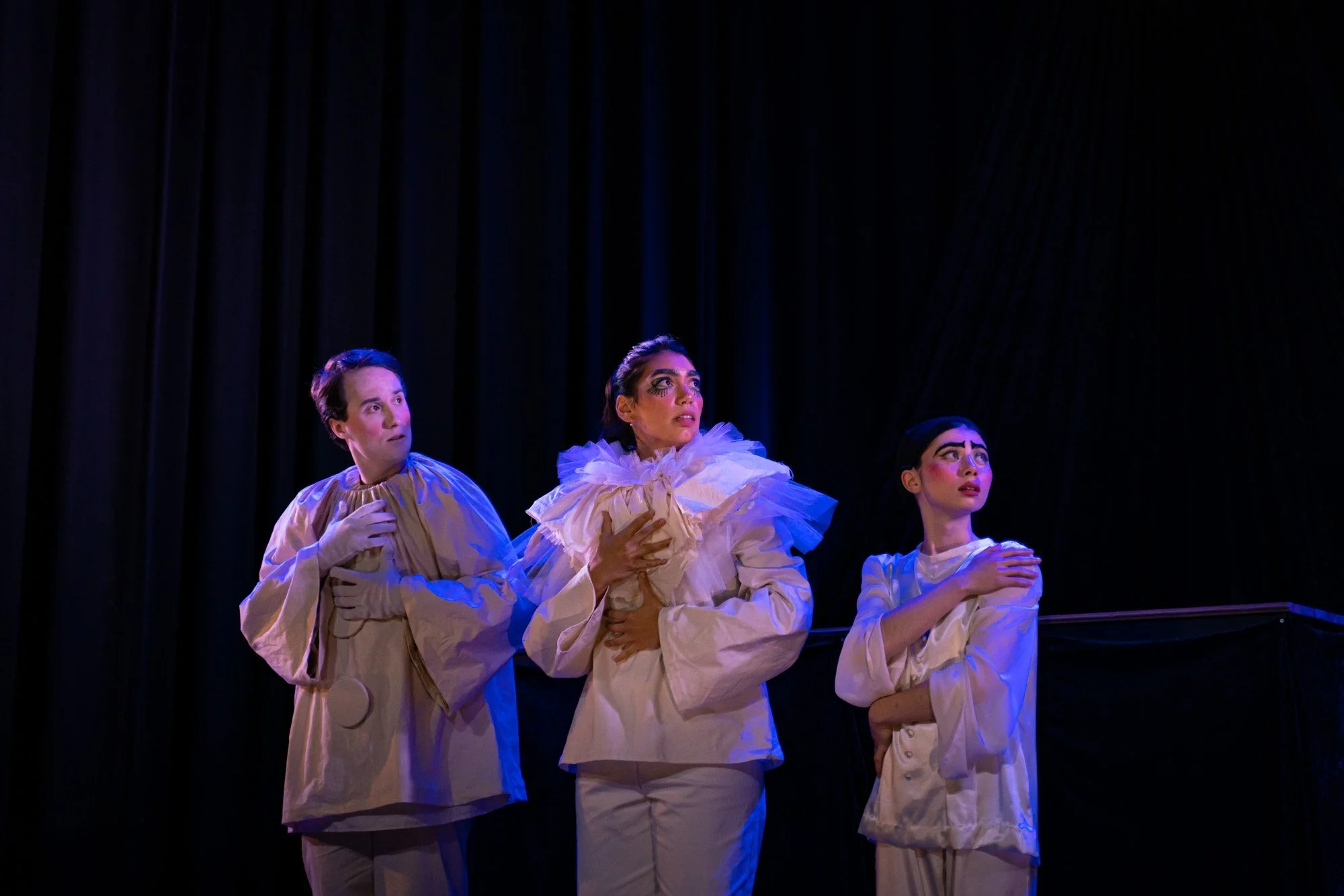 The story in this was nuanced by the players and their diverse strengths. It is so rich with symbolism. Having said this , I can still link traits that they all had in common in their different performances. Pierrot is amorous, complex, and just a little ambiguous anyway, but then there were things these different Pierrot’s did that was the same. For example, my favourite moment was one that happens countless times in the show to all three characters or faces of Pierrot, and that is the simple pleasure of Pierrot’s feeling the light of the moon before even seeing it. It created true joy for me and reminded me of the peace there is in stillness. I literally had goosebumps.