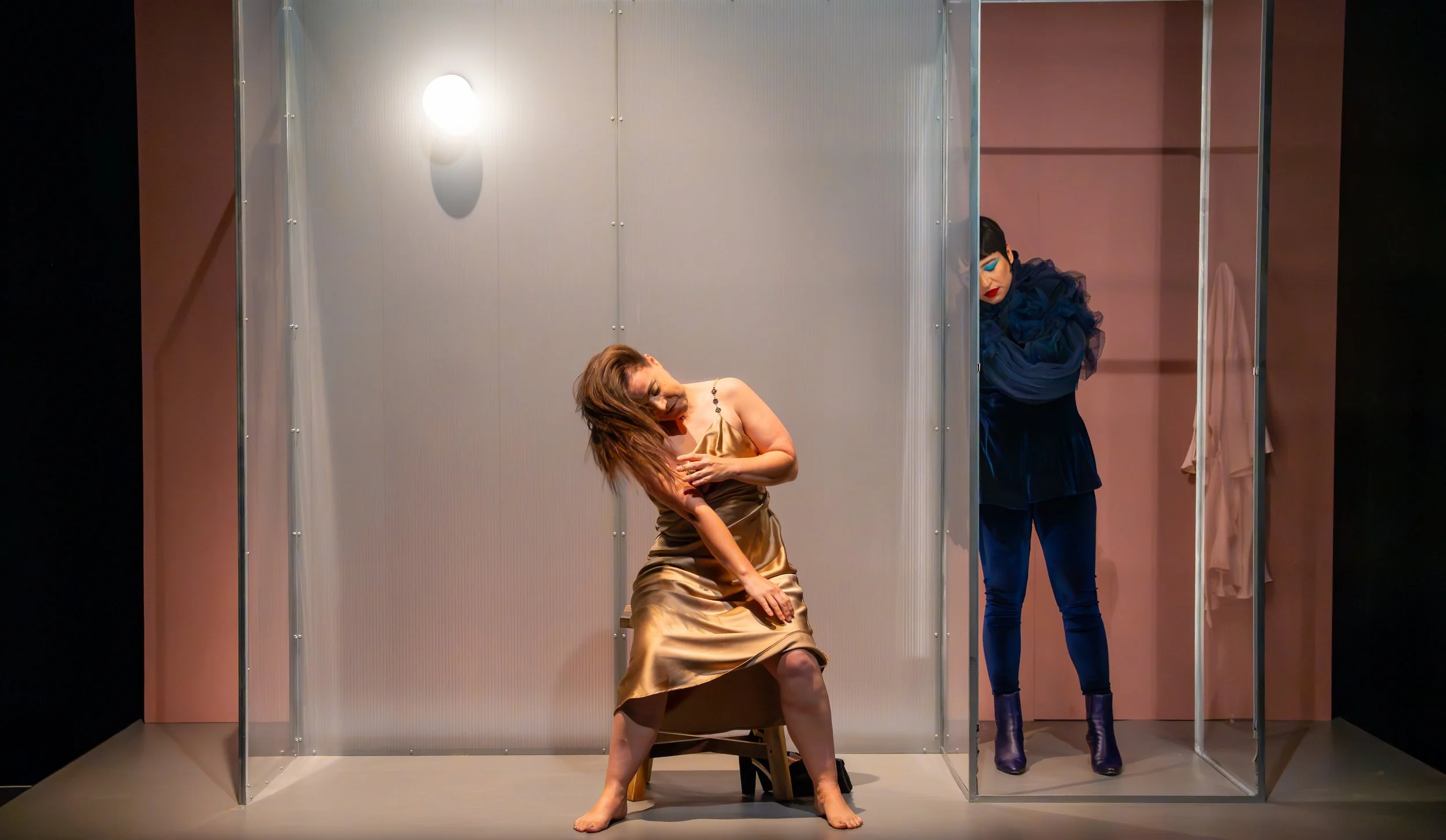 The work provides insight into four rooms, presented as four discrete sets around the performance space. Performer Carla Lippis, through song and narration, guides audience attention to each room and gently brings us into each experience. In one room, a performer envisages their ideal date. In another, a solo dance of apparent heartbreak and sensuality.