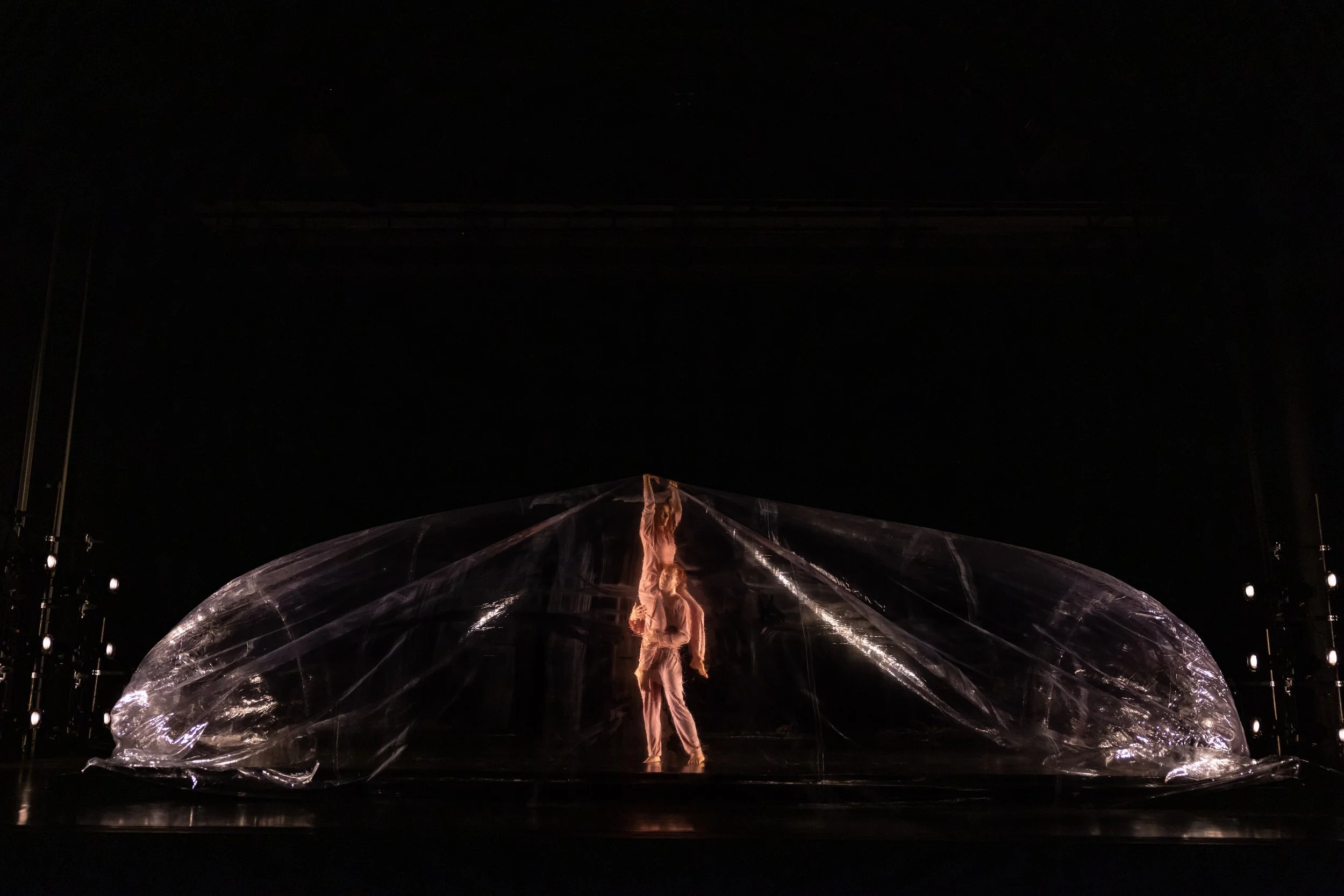 QPAC’s playhouse theater had been transformed to seat the audience on either side of a large, clear inflated bubble. The atmosphere was tense and encouraged a sort of reverence from the audience right away which I really enjoyed. There were people either side of me trying their hardest not to rustle too loudly, or whispering very quietly to their friends. It signposted the tone of the show well and let us know that we were going to see something beautiful.
