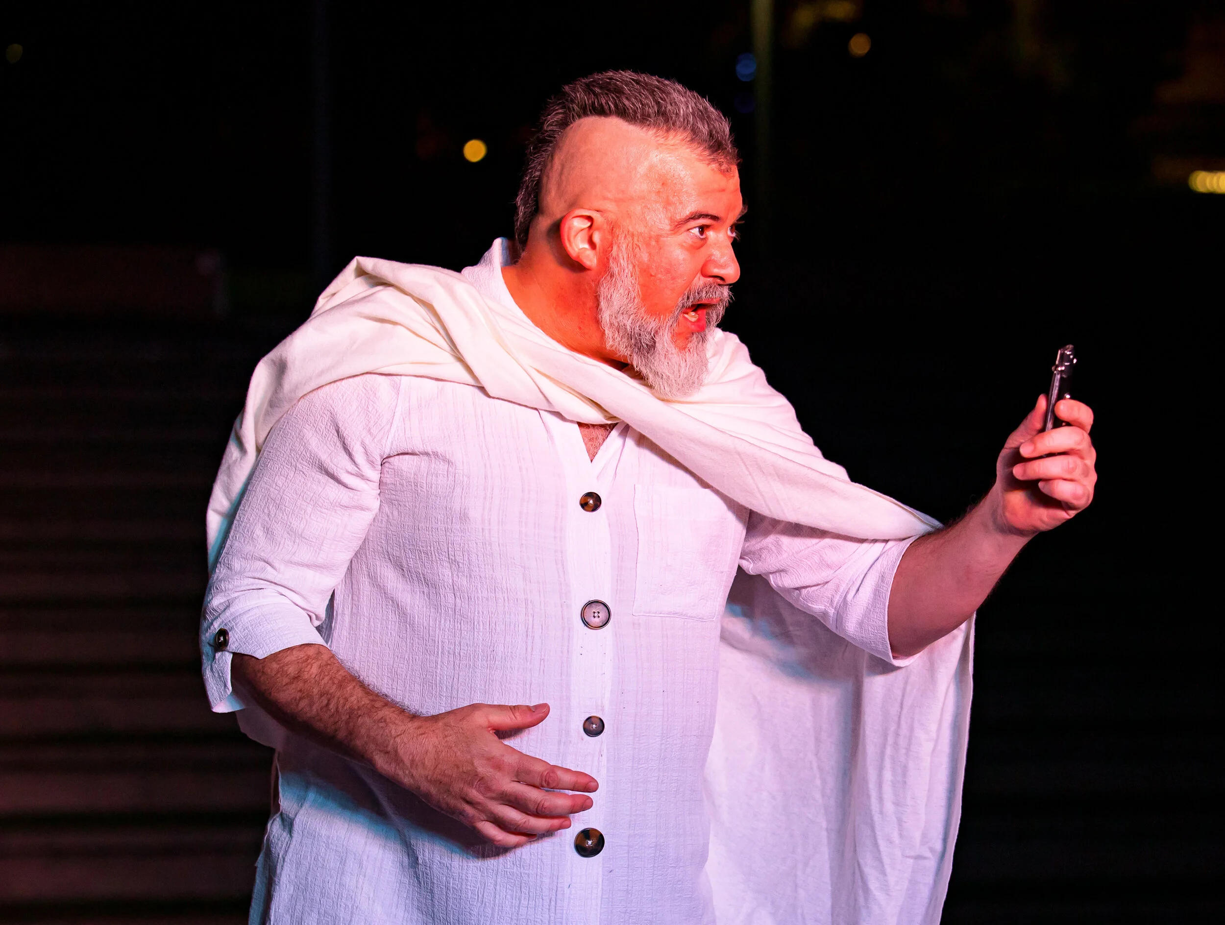 Of course, if you are already a QSE supporter then be reassured that this 20th Anniversary season is unmissable. The show runs at speed, but every word counts in this gripping production. Hats off to Rob Pensalfini, who combines a masterclass in directing with roles as music and fight director, set designer and is an absolutely compelling Friar Lawrence. The production is worth seeing for Pensalfini’s Friar Lawrence alone. But I also recommend this show for the Directors’ skill in drawing out the ‘R&’J duality—and for bringing some fabulous duelling to the Roma Street Parkland Amphitheatre.