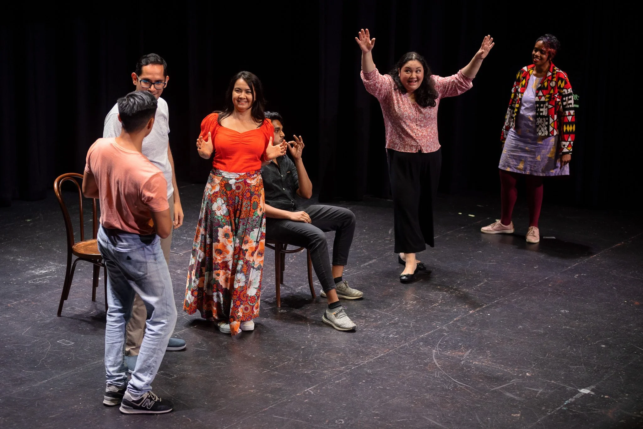 Improvised comedy is totally made up on the spot - every show is its own opening and closing night. The joy and fun of improv comes from the pure spontaneity and surprise, and because it’s all improvised and created in that particular room at that moment, the audience is having a totally unique experience. Improv lets us tell hilarious and ridiculous stories, as well as portraying real human moments - it’s the most joyful and exciting form of comedy!