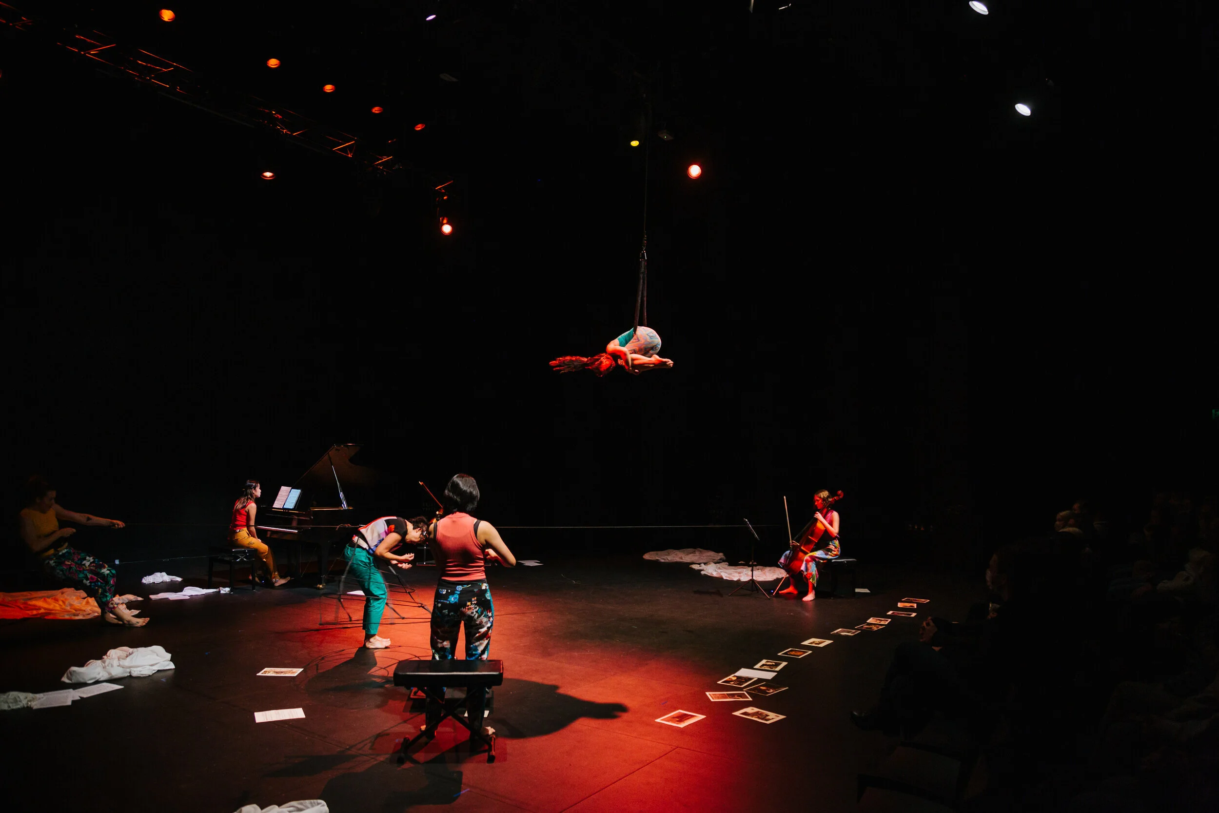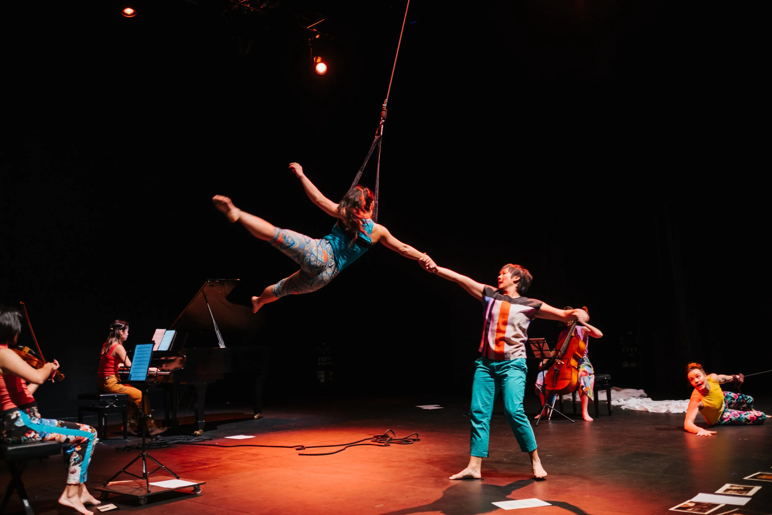 Seen But Not Her was an exciting fusion of classical music with circus and contemporary movement, made about women , presenting the compositions of women, and produced entirely by women. Celebrating female empowerment and herstory, this show overthrew any traditional understandings of the feminine. There was a strong mathematical sense fundamental to this production simply with the inclusion of three composers, three musicians and three movement based artists; and the algorithm that resulted from Celia White’s clever Artistic Direction.