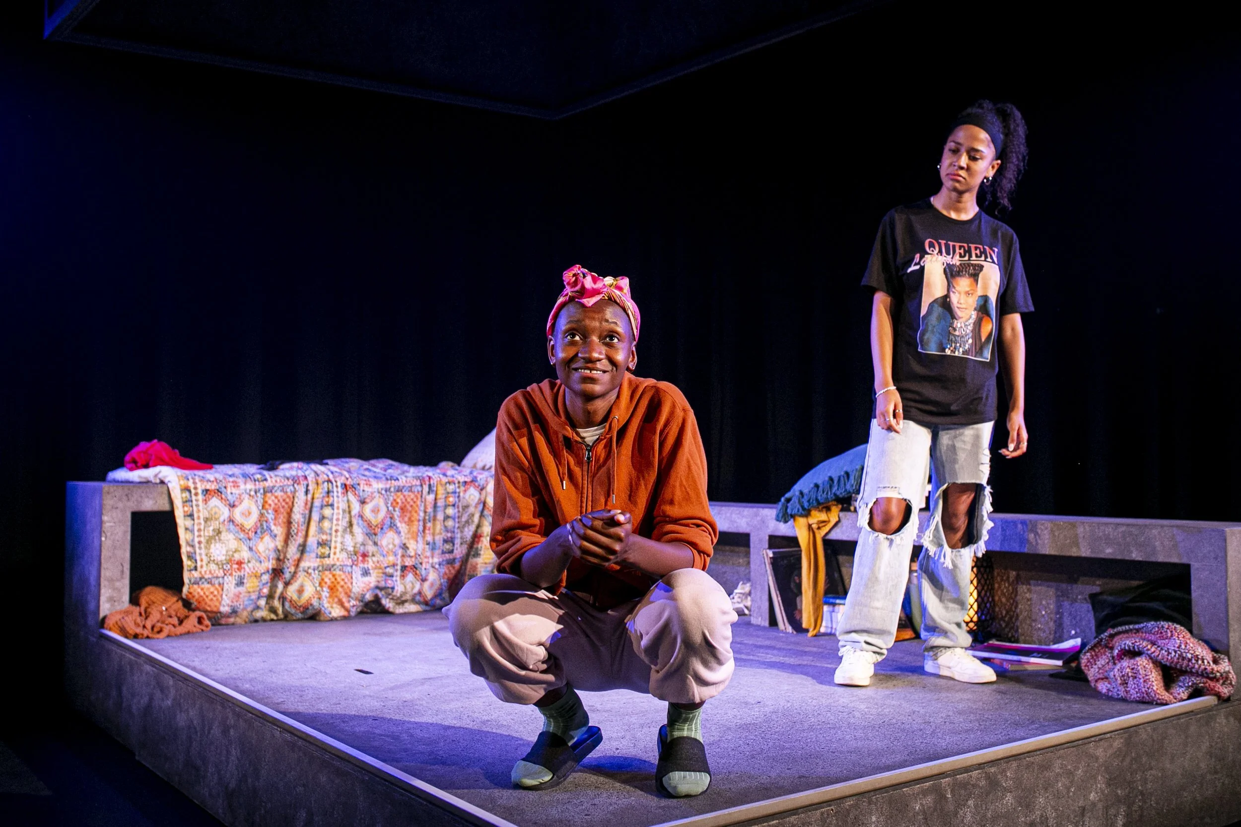 If the title is anything to go by, the opening scene is just as delicious. The lights are dark and the two are seen whisking kylie jenner into Cleo’s bedroom under the floorboards. By this time, the doors to the theatre are locked and no one can leave. My body filled with excitement as the award-winning show my entire network has been talking about is finally playing here. I take a seat in the back row and grab one of the many postcards situated around the theatre, reading the very important messages before scanning the room to suss out who’s in the crowd, mostly to see how many wypipo are present so I can check in periodically how much guilt consumes them. A diverse audience is in tonight, conversations and laughter echo throughout the Roundhouse Theatre at La Boite. They give a decent amount of woo’s, gasps, giggles and undivided attention.