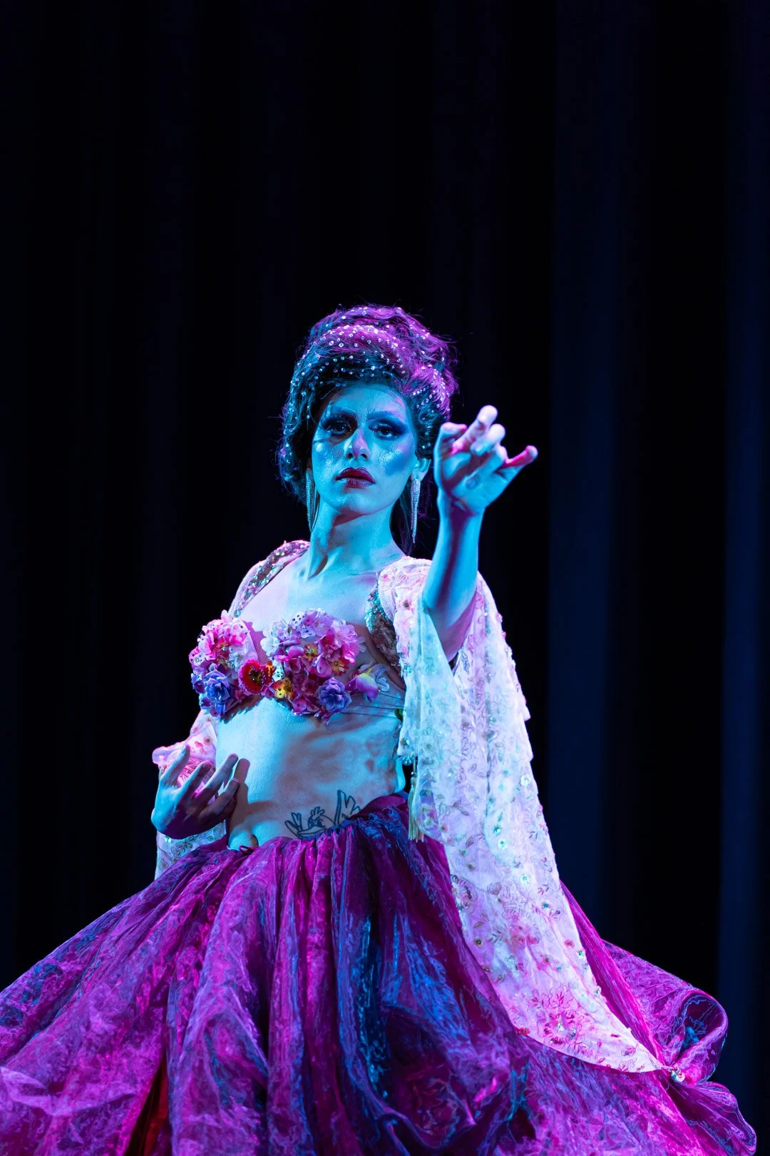 What struck me in the second scene was Thalia’s exploration of not being able to be outwardly Queer in her country, yet coming here was a revelation for her love of gender diversity and celebration of identity, yet being an immigrant has its downsides. The historical influences weave into the intersection of her story; of being Mayan before colonisation and the erasure of culture brought by the infiltration by the Church of the Spanish Empire in the 1500s. Deep poignant remarks centre on the emasculation of men creating machoism and the disassociation from self. Not safe to be LGBTQI or non-binary, not safe to wear leopard print, being raised Catholic and not being one’s authentic self.