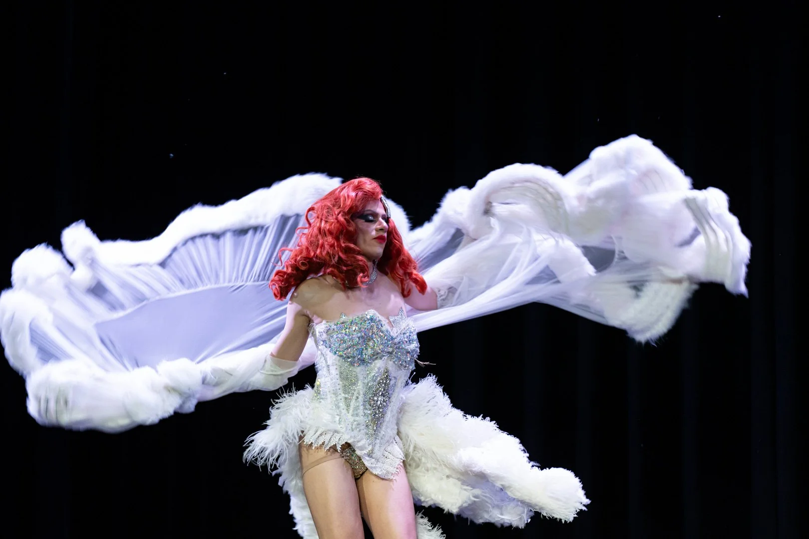 Thalia Novela is a self-described Queer Latin-x boy coming to Australia looking for ostrich feathers, acceptance and love, and these ambitions are covered in three distinct sections of the show. As Thalia struts on stage complete with white glamorous negligée and sequins, it is obvious that she has a following from the local drag scene. A continuous stream of cat calls amidst the soundtrack of Diamonds Are A Girls Best Friend, Material Girl and Single Ladies belie a raunchy strip tease rivalling some of Brisbane’s hottest burlesque performances.
