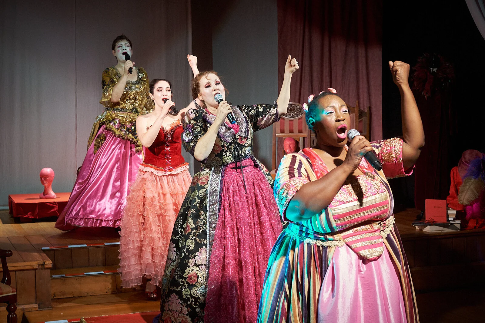 Nestled under the arm-pit of the Suncorp Stadium is a church; a figure of history, refusing to give way to modernity. We gather on the grass courtyard sipping bubbly wine and waiting to go inside to see the play. The strange mix of old and new - that unsettling skyline of glass and concrete - turned out to be exactly the right concoction to set the scene for this play: The Revolutionists by American playwright Lauren Gunderson.