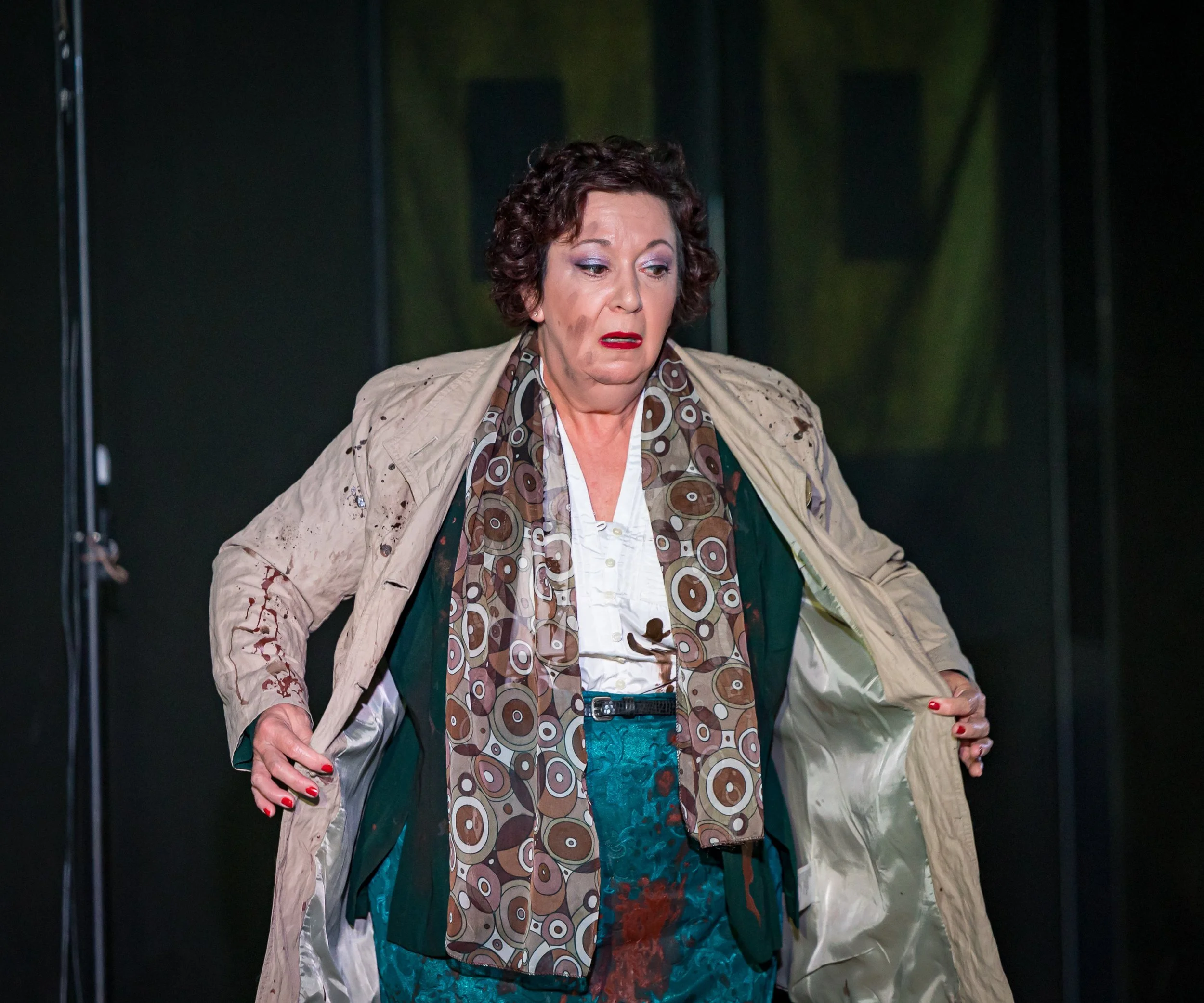 The impacts of gluttony and waste are a key theme in The Turquoise Elephant: ‘Melbourne is downing in its own shit,’ reinforced by Augusta’s fantastic entrance as the recipient of the ‘excremental artwork,’ and the later disgusting consumption-vomiting by Olympia. But all seven of the deadly sins are portrayed in this play—from the inaction of the blogger and the envy of the fraudster, through to the lustful and gluttonous behaviour of Aunt Olympia. However, the outstanding representation of the ‘sins’ of the people were in Harmon’s fabulous portrayal of Augusta, with memorable depictions of greed, pride and wrath. Augusta is clearly a fabulous part to play, and I absolutely loved the way in which Harman built on every opportunity: great as the controlling grandmother (and ‘grieving’ mother); disdainful and occasionally impressed as the mistress of the house (lovely interactions with Ooi’s Visi); a triumphalist climate-denying leader of State; and alternately pitiful and bonkers in recovery.