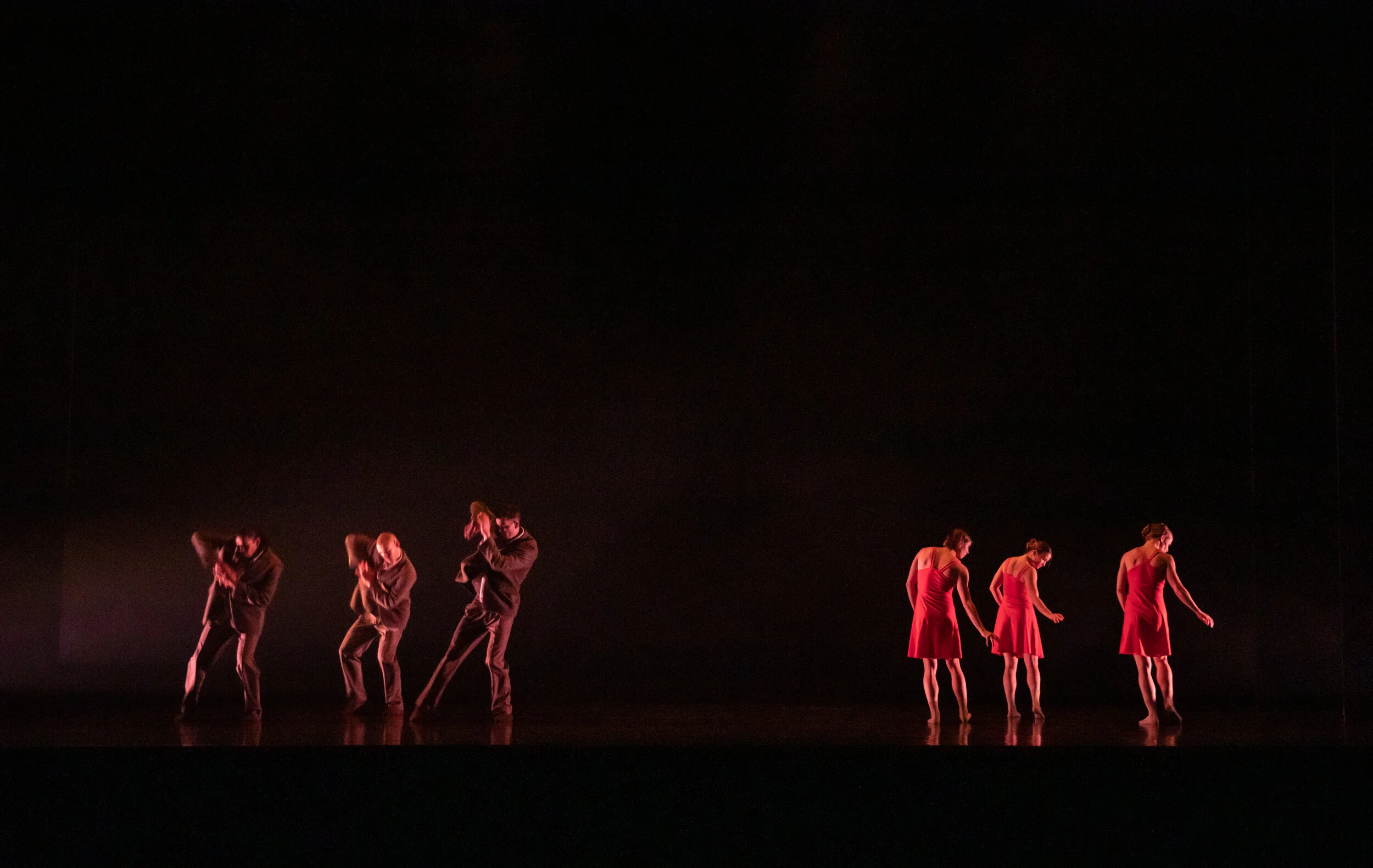 The third piece Cult, presented a chorography and musical score from a 2004 piece from Hofesh Shechter. The costuming of brown suit jackets for the men and vibrant red dresses for the women set the scene as a critique of capitalism and the roles it forces us to play, albeit a pejorative and old-fashioned perspective of women especially. The movement was fast, light, frenetic. Strong tones of apocalypse, with the literal call to action, “Something to fight for, something to live for, something to die for.” But we were not told what it was that was worth living and dying for. And it felt like a statement, not a question, so I was left searching for the intent. The stage lighting was superb, with dancers moving into the light as an ensemble, then fading away as one as highlighted in the foreground.