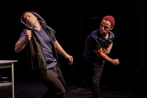 This new work explores the stories of the figures from a high school community who are each battling with their own demons and insecurities. Key figures include alcoholic Constable, a jock who was buckling underneath his schools, parents and teachers expectations put on him and Jesse, a student struggling to be accepted as a result of their gender identity. Foster and Jones shared these characters between themselves, as well as bringing to life all of the other members of the school community shown through the change of a hat, jacket, door frame or spinning of a table. The way in which the actors transitioned in and out of characters including changing their tone, dialect and movements was seamless.